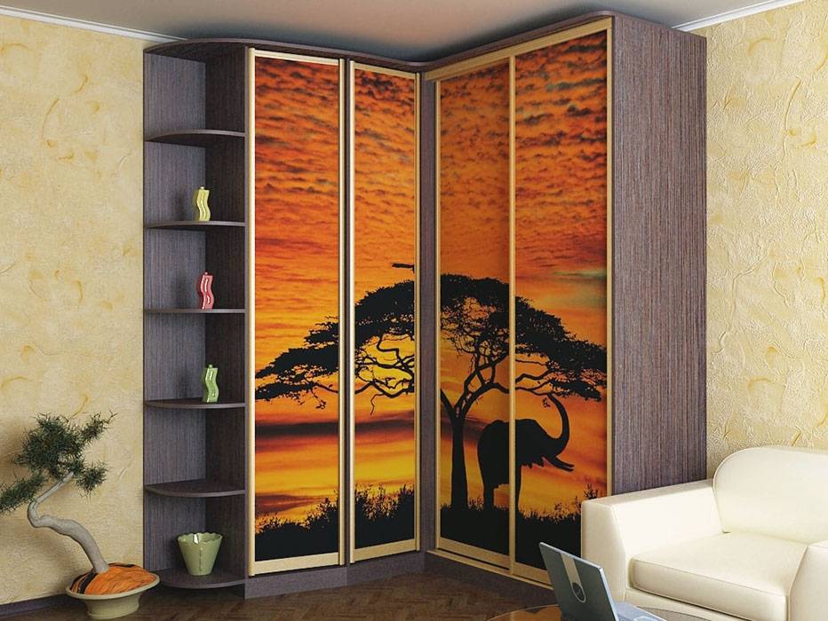 Кроме того, декор фасада шкафа с дверцами купе оформляют еще и фресками, лазерной гравировкой, бамбуком, настоящей или искусственной кожей, украшают экзотическим ротангом.