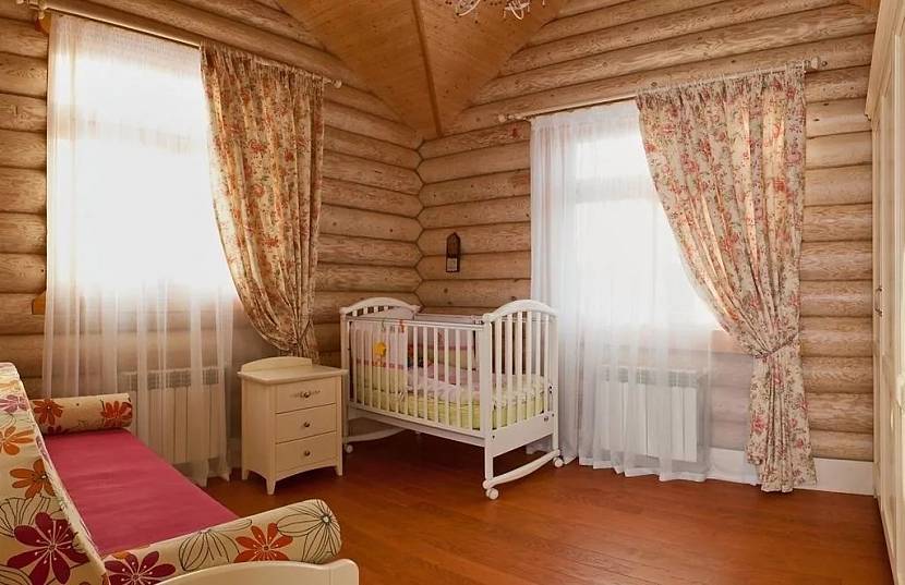 Зеленые шторы в деревянном домеИсточник horosho-doma.ru
