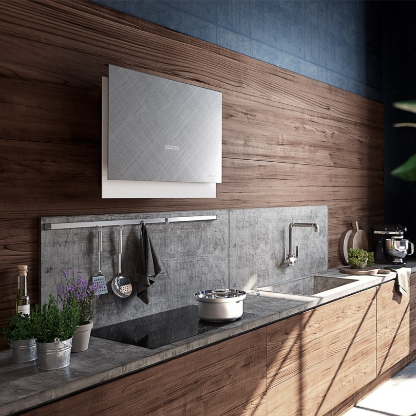Правильно выбранная вытяжка в интерьере кухни отлично работает при самых высоких температурах и защищает от горячих испарений, жирного конденсата, чрезмерной влажности, перегрева.