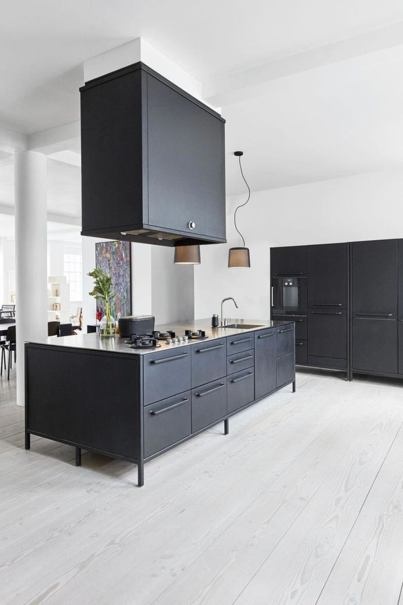 Островную потолочную вытяжную систему размещают в центральной части. Она отлично подходит для больших кухонь.