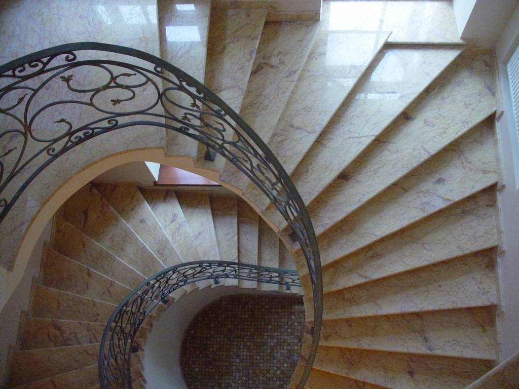 Маршевые лестницы отделывают прямыми плитами. На винтовые и полукруглые лестницы укладывают скошенные плиты, изготавливаемые на заказ.