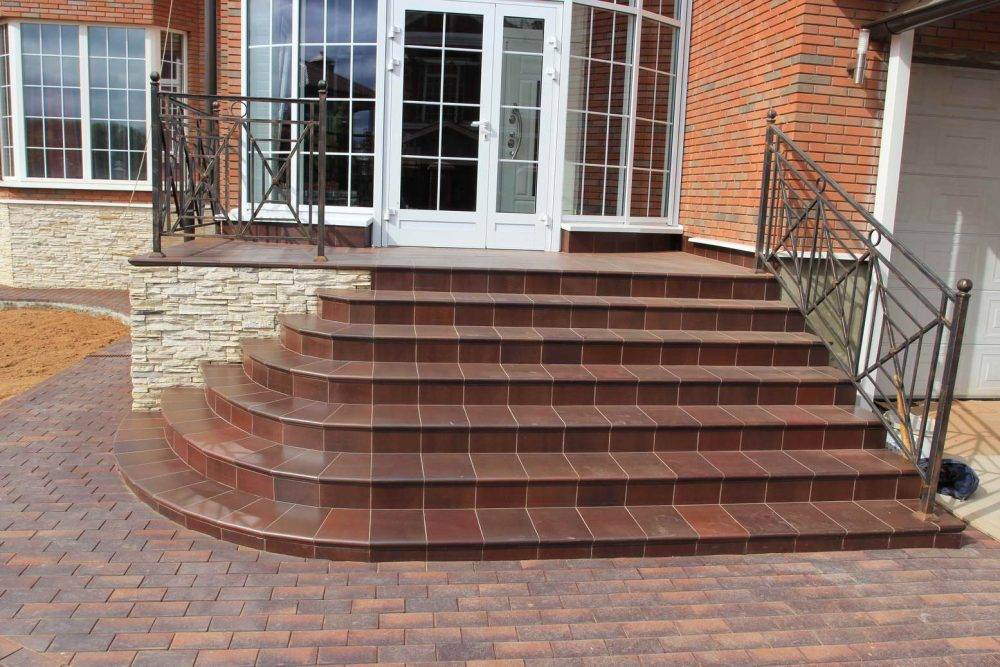 Разница между наружной и внутренней лестницами большая. Это и условия, в которых они находятся, и различия в эксплуатации. Плитка на ступенях крыльца часто подвергается перепадам температур, изменениям влажности, морозу, жаре. Поэтому и материалы, используемые для облицовки, должны быть износостойкими.