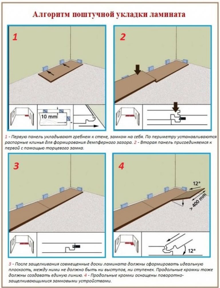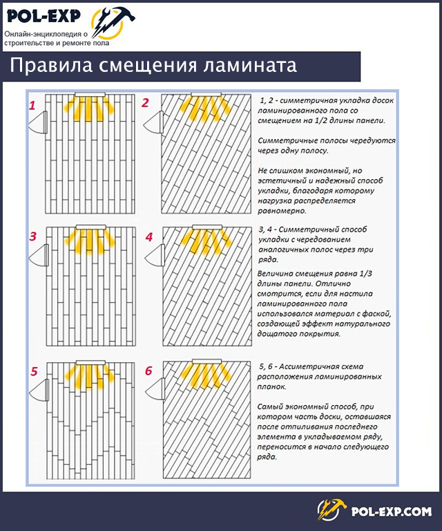 Не зависимо от типа напольного покрытия с фаской или ламинат без фаски существует несколько правил укладки материала: