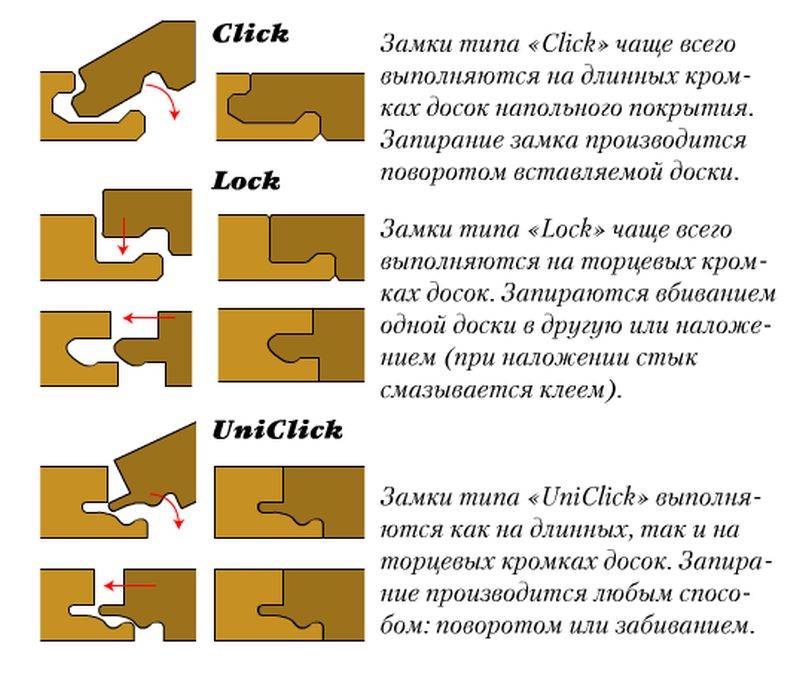 Многие владельцы недвижимости пытаются понять, как класть ламинат с фаской. Это достаточно просто, шип панели заводится в выемку предыдущего ряда изделия под определённым углом, затем происходит защёлкивание замкового соединения. Напольное покрытие расклинивают с обеих сторон.