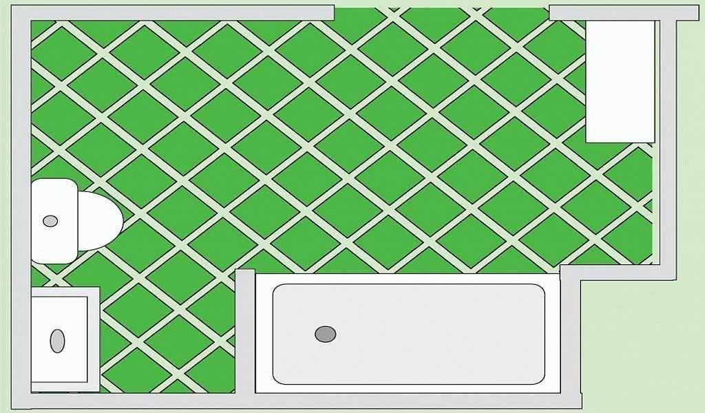 при котором плитка обращена к стенам и дверному проему не одной из сторон, а