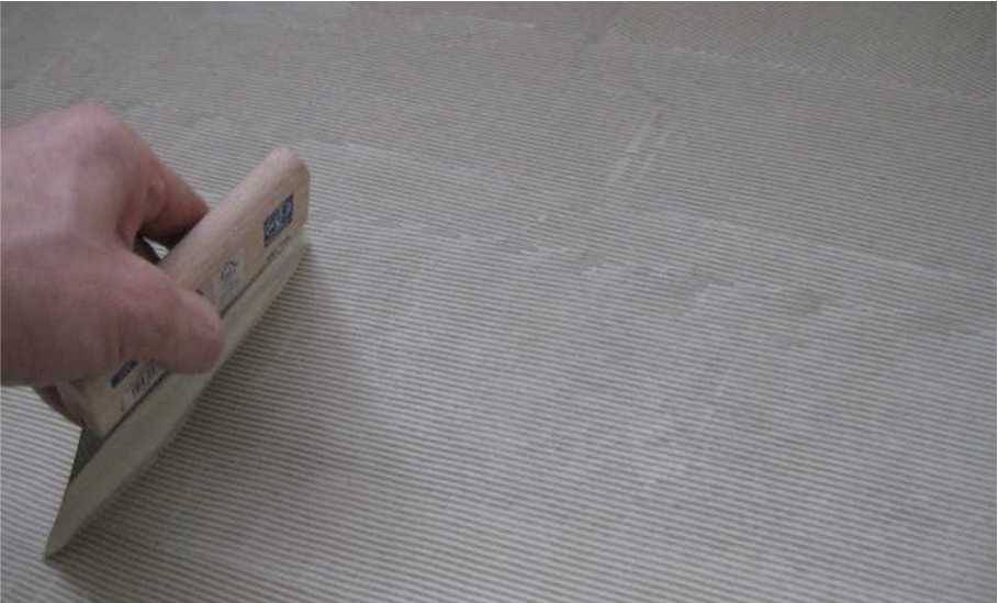 Клей по полу распределяется зубчатым шпателем с очень мелким зубом