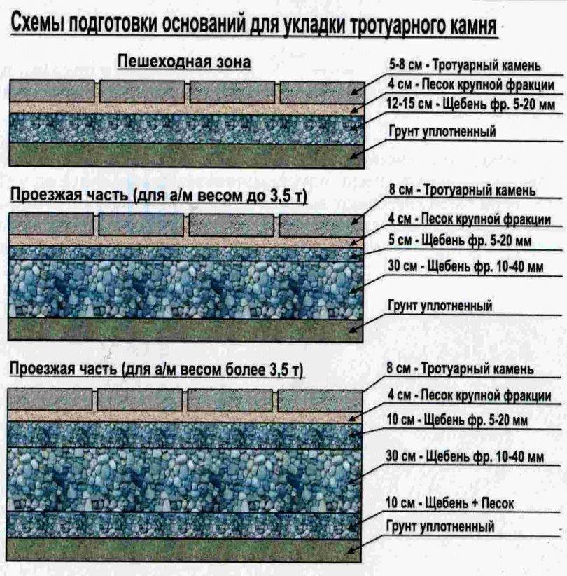 Несущий слой, он же стабилизирующий — это песчано-гравийная смесь или щебень фракции 20 на 40. В случае укладки, предназначенной для большой нагрузки, а так же на землях где больше глины перед укладкой несущего и слоя рекомендуется применить геотекстиль для предотвращения смешивания гравия песка или щебня с землёй.