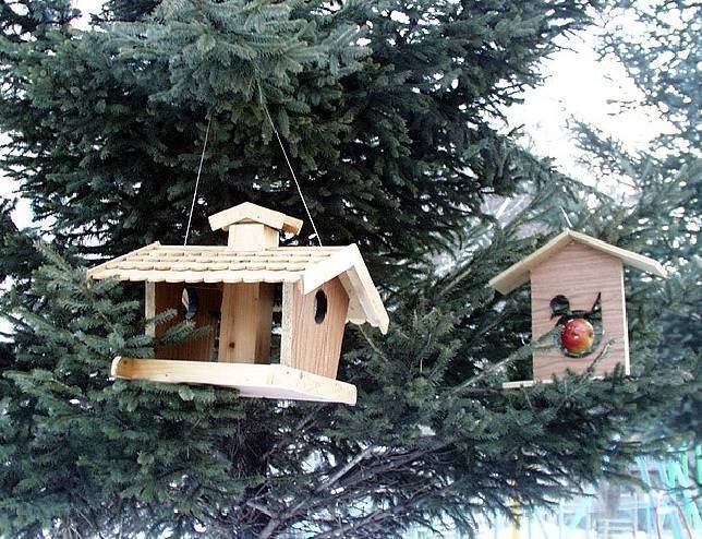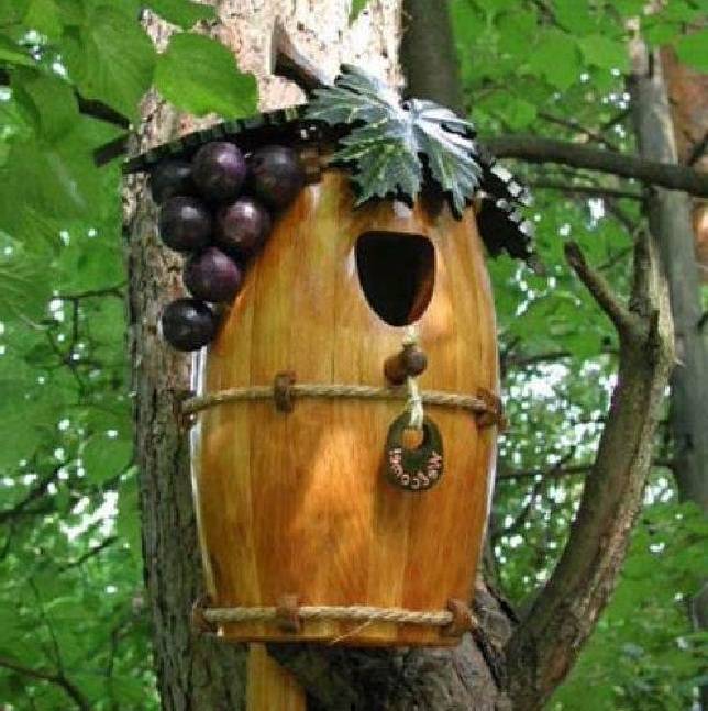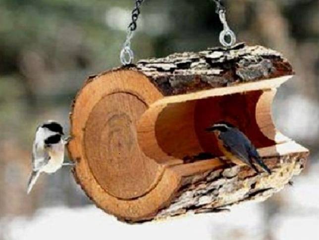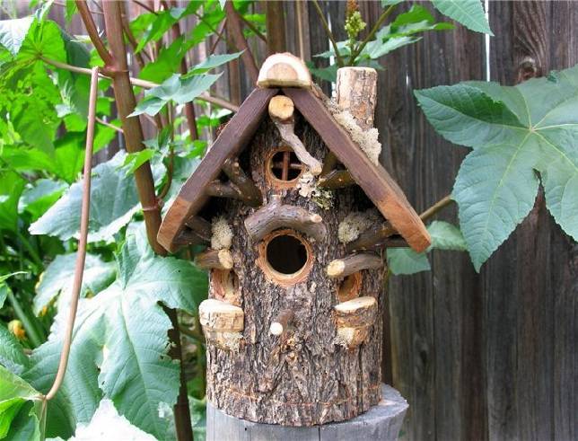 Из простого сруба дерева можно сделать красивую кормушку для птиц. Для этого необходимо подобрать спил дерева подходящей толщины и вырезать в нем выемку во внутренней части, после чего закрепить на дереве или любом другом удобном на участке месте. Подкладывая в кормушку корм, птички смогут во время перелетов клевать его и тем самым украшать вашу дачу. Изготовить кормушку самого простого типа можно из множества предметов, тех же пластиковых бутылок, подобные идеи для дачи своими руками фото всегда можно найти в интернете и попытаться повторить.