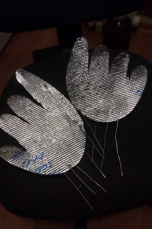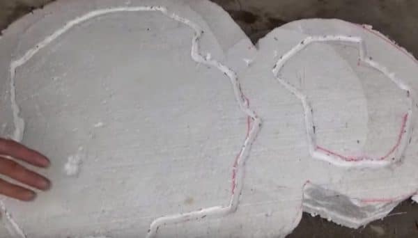 Сначала нужно сделать основания из большого листа пенопласта. Нарисовать форму основания и вырезать углубление. Удобно это делать при помощи паяльника.