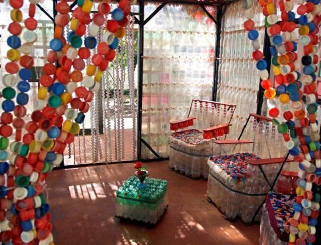 Огромной популярностью из подручных материалов пользуются пластиковые бутылки. Им просто создать любые формы.