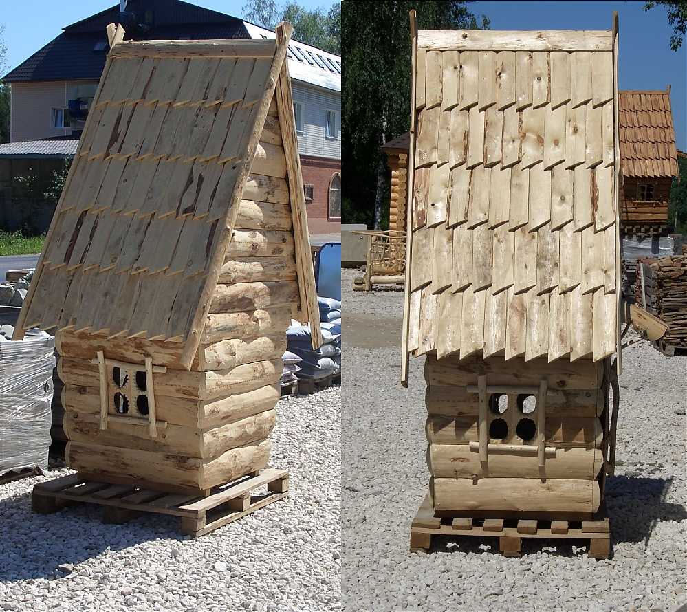 Эти постройки порой появляются раньше заборов, ведь без них — беда. Строители будут осваивать все близлежащие закутки, а кому, интересно, это понравится. Так что самая необходимая, пожалуй, постройка на участке — туалет. А с чего это мы о туалетах, применительно к украшению участка? А потому, что и эту постройку можно сделать так, что ее не обязательно будет прятать. Выставлять на показ — тоже не вариант, но и маскироватьне потребуется. Например, стандартный домик-скворечник можно сделать из бревен. Получится мини-избушка.