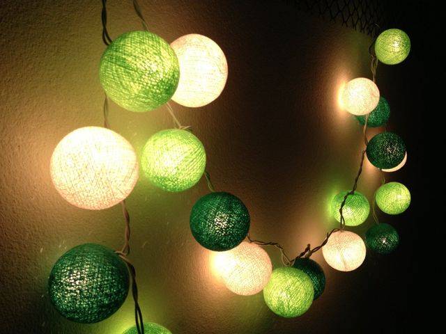 Цветовая гамма гирлянды выбирается по случаю. Это может быть феерия красочных огоньков либо однотонная гамма. В темноте эффектно и отчасти таинственно выглядят крупные лампочки белого цвета. А предпочесть теплый или холодный оттенок белого – решайте сами!