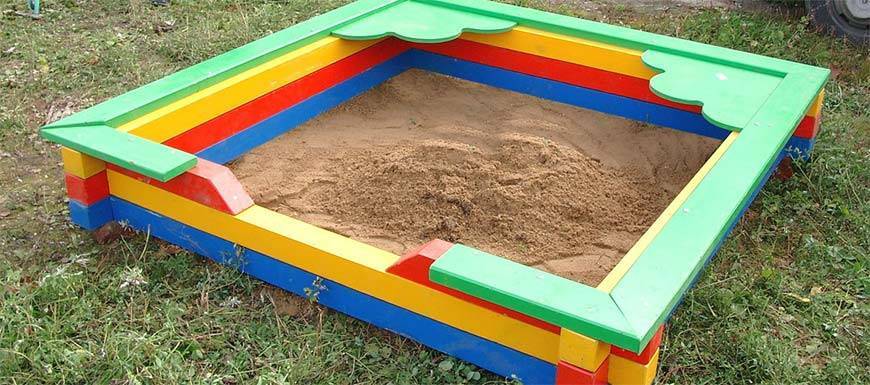 Малыши любят играть в песочнице. Их обрадуют разноцветные бордюры, сооруженные из бутылок или деревянных обрезков. Песочнице можно придать интересную форму и защитить ее от солнечных лучей. Один из вариантов с горкой представлен на фото ниже.