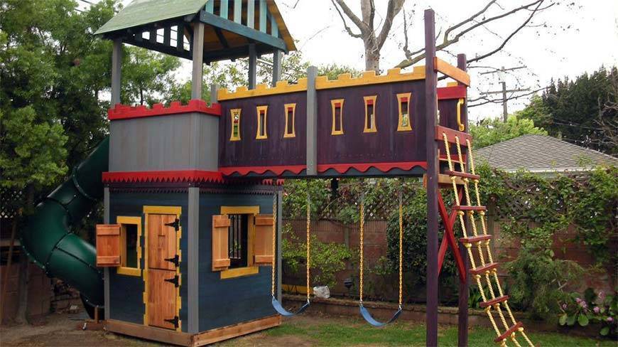 Детям можно отвести не просто территорию для игры, но и обустроить игровую зону с комфортом. Всем детям будут в радость качели. Для них достаточно простых досок, веревок. Подойдут металлические цепи и те же покрашенные шины. Остатки стройматериалов станут горкой, старая мебель превратится в качалки.