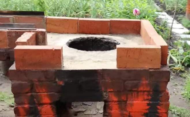У мангала выложить бортики. Промазать верх печи и все неровности глиной.