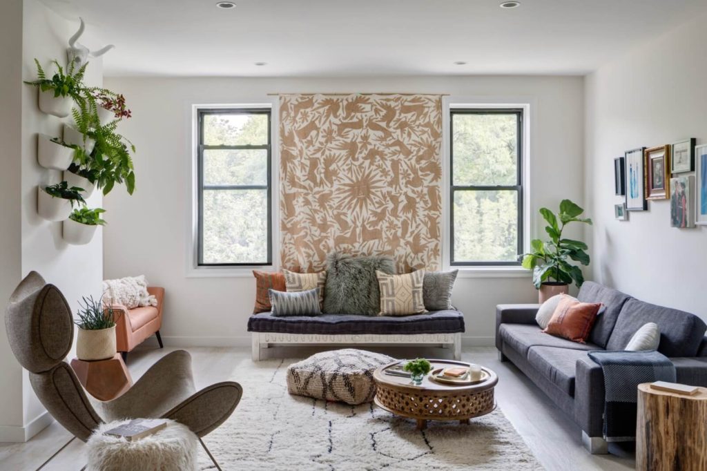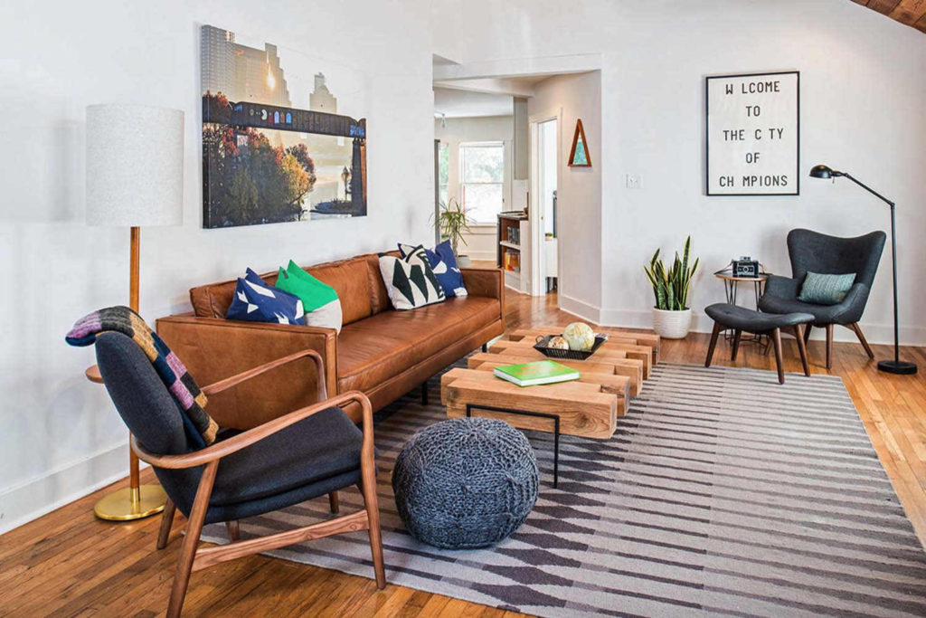 Метод планировки способствует общению, поэтому его чаще используют в гостиных. Этот прием позволяет создать 2-3 зоны, чтобы физически разделить комнату. Этот вариант можно комбинировать с другими технологиями обустройства. Мебель разных стилей, форм и размеров гармонично смотрится в интерьере.