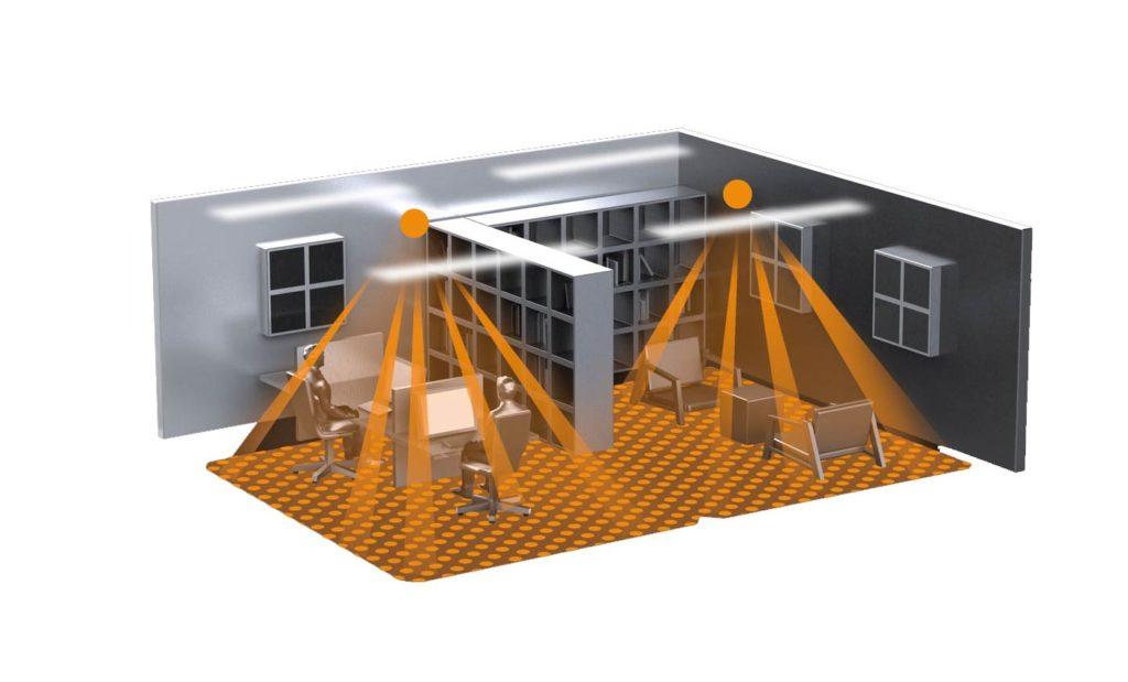 Пассивные ИК-датчики движения можно условно разделить по методу установки на настенные и потолочные. Последние особенно эффективны для контроля всего объема помещения, так как не имеют мертвых «саботажных» зон.