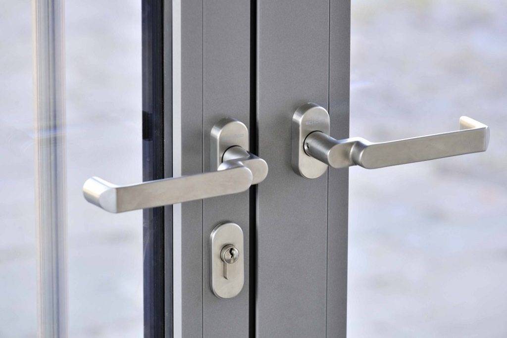 Фурнитуру для алюминиевых дверей со стеклопакетом можно разделить на два типа: