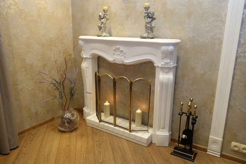 - Каминная доска – полка, которая крепится над дымовым карнизом и служит для размещения на ней различных украшений или предметов. Выполняет декоративную роль.