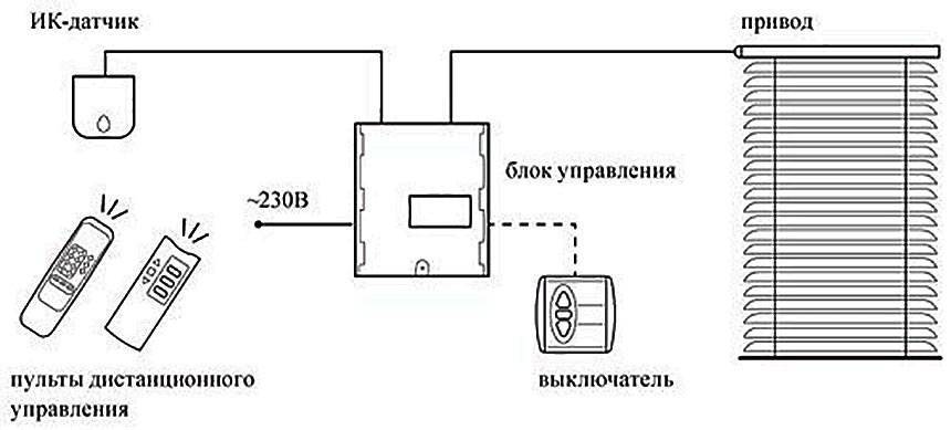 Жалюзи — это один из самых распространенных типов солнцезащитных устройств с автоматической системой управления. Предполагается использование всех существующих типов жалюзи. Действие механизма осуществляется по инфракрасным и радио — сигналам, которые передаются электроприводу.