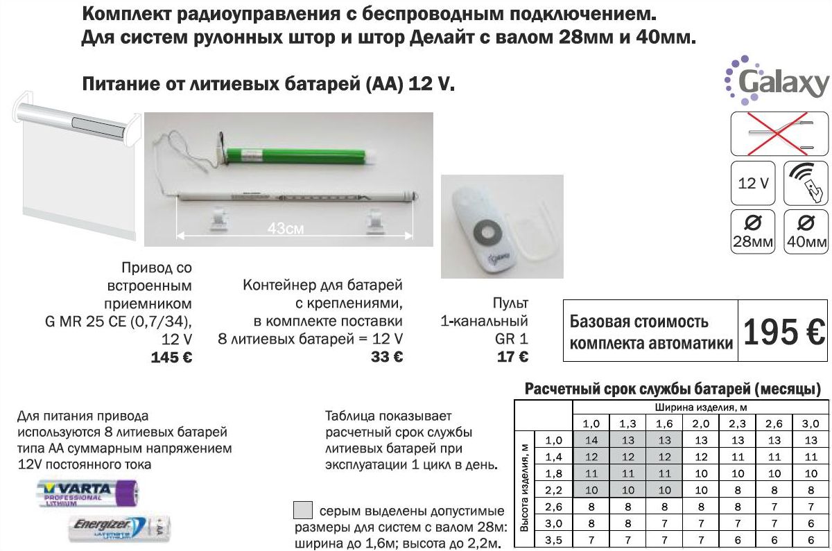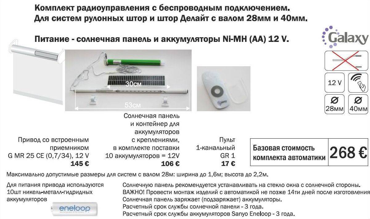 Электромотор снабжён метровым кабелем, ИК-индикатором и кнопкой сопряжения. Технические данные этой модели «умных штор» таковы: