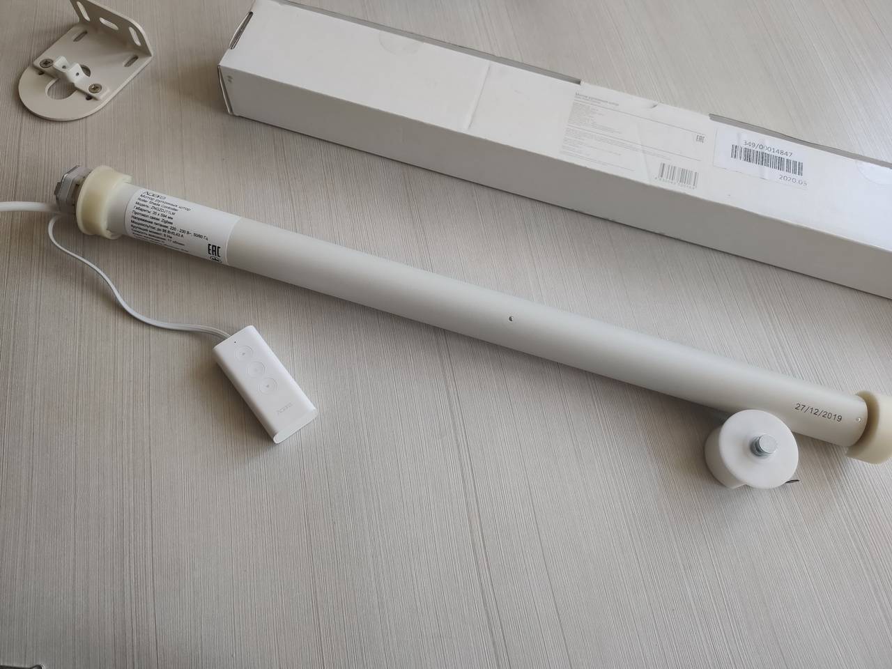 Мотор представляет собой массивный стержень длиной 585 миллиметров при диаметре 35 миллиметров весом 2970 грамм. На магазинные «ролльки» по 500 грамм не похоже. А ведь тут ещё шторы нет!