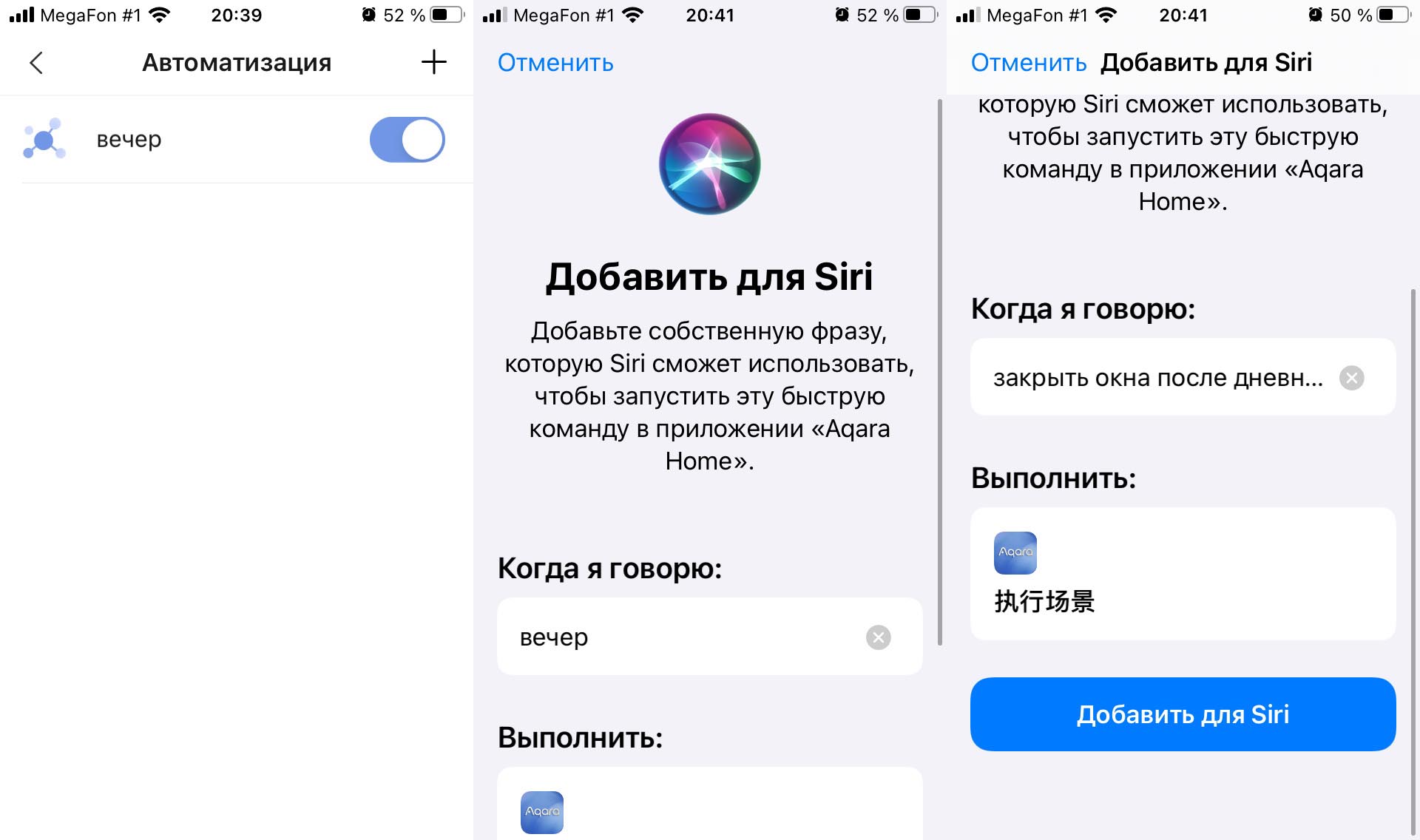 Голосовое управление скриптами очень удобно. Напомним, что все компоненты Aqara, работающие в HomeKit, отлично работают с Siri (о всех подробностях можно прочитать здесь).