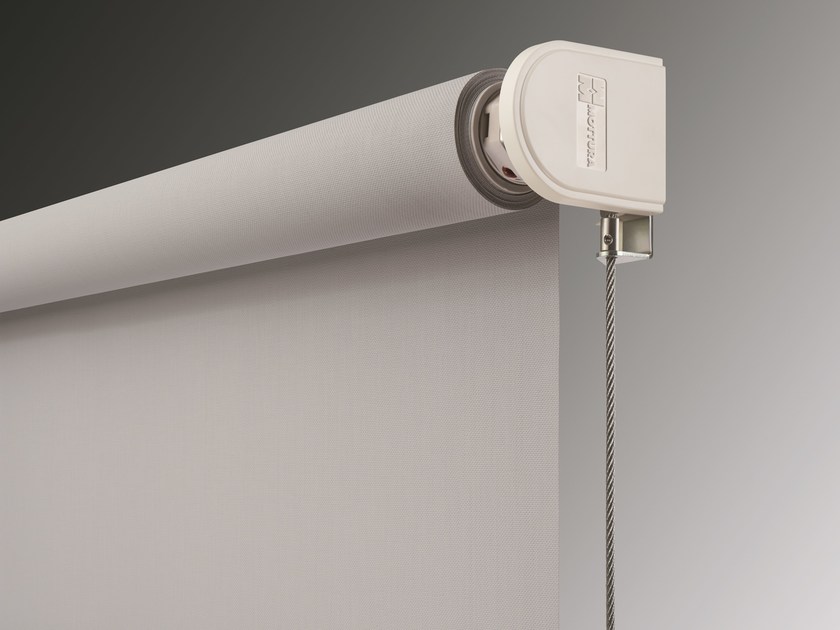 Карниз с электроприводом в них выполнен в виде цилиндрического вала, вращающегося от установленного сбоку либо встроенного внутрь цилиндра моторчика. При вращении вал наматывает на себя все полотно ткани (в рулонных занавесах) либо поднимает нижнюю часть изделия с помощью направляющих нитей (жалюзи с электроприводом и римские полотна).