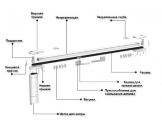 Раздвижной механизм для штор устанавливается на классические горизонтально закрывающиеся занавесы — гардины, портьеры и на японские изделия панельного типа. Конструкция раздвижных электронных карнизов сложнее, она состоит из: