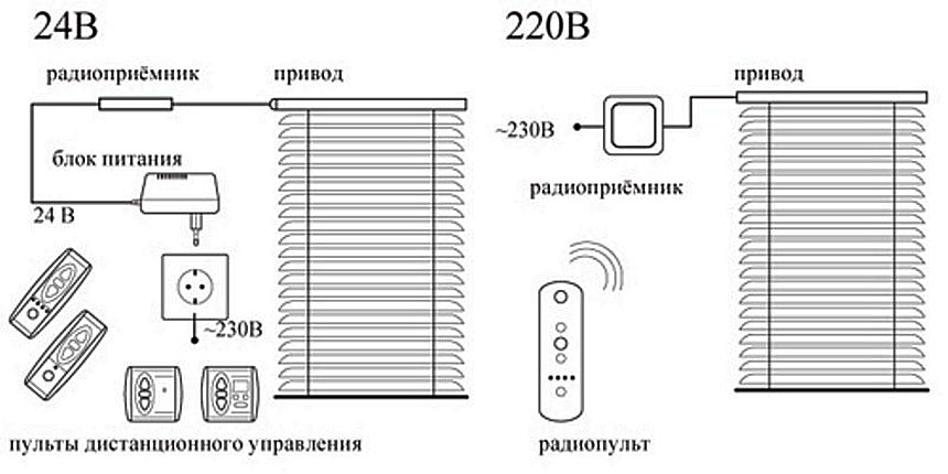 Умные шторы отличаются друг от друга комплектацией, способом подключения и управлением.