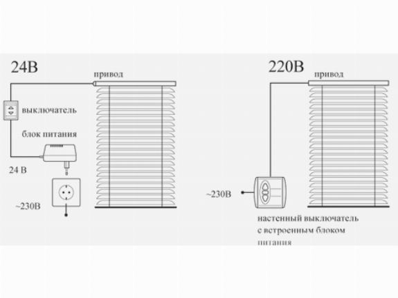 Проводной двигатель соединяется с источником питания, обеспечивая стабильную работу механизма. Однако батареи в данном случае всё же надежнее. Ведь жалюзи можно расположить где угодно, и заряженная батарея работает на протяжении нескольких месяцев. Двигатель потребляет мало электроэнергии, и пользователи не используют его беспрерывно. Некоторые модели умных занавесок работают на солнечной энергии. В данном варианте используют небольшую солнечную панель, расположенную в верхней части жалюзи с солнечной стороны, обращенной к окну. Важным преимуществом при использовании данных моделей является отсутствие обязательного технического обслуживания. Механизм полностью работает от солнца, которое поддерживает его заряженное и работающее состояние. Недостаток данного питания заключается в ненадёжности его работы при недостатке солнечного света на протяжении нескольких дней.