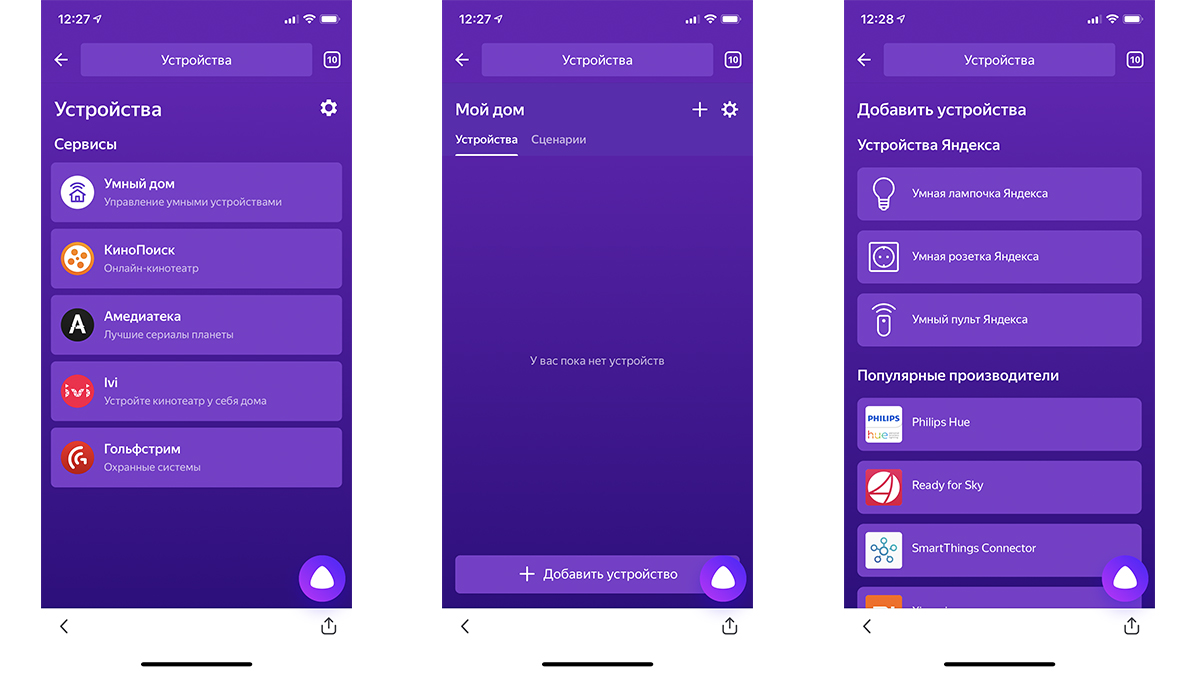 В экосистеме умных облачных устройств Redmond нет голосового управления и к ней нельзя подключать сторонние устройства. Но тут на помощь приходит «Алиса» на смартфоне.