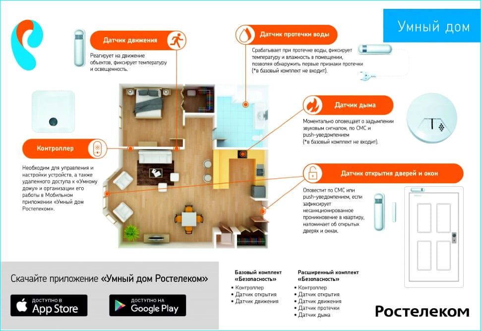 В блок «безопасность» входят гаджеты двух типов. Первые следят за несанкционированным входом в жилье, а вторые — за непредвиденными аварийными ситуациями.