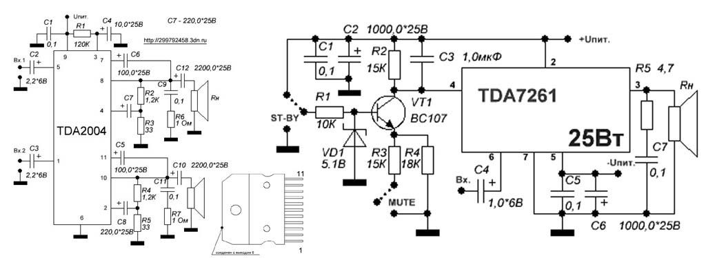 Большинство микросхем УНЧ класса AB имеет конструкцию, удобную для монтажа в радиолюбительских конструкциях даже с проводным монтажом.