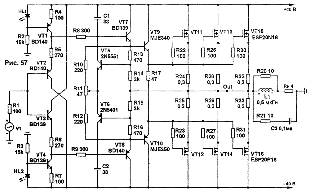 Простые высококачественные усилители мощности НЧ на МДП-транзисторах