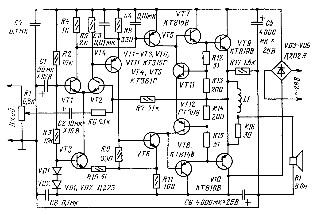 Несколько схем транзисторных УМЗЧ, хронология радиолюбителя