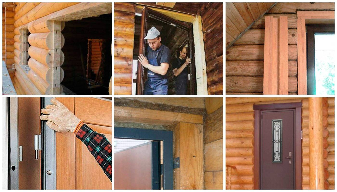 В любом случае установить дверь в бревенчатом доме можно только через год после его постройки, когда завершится самый активный этап усадки.