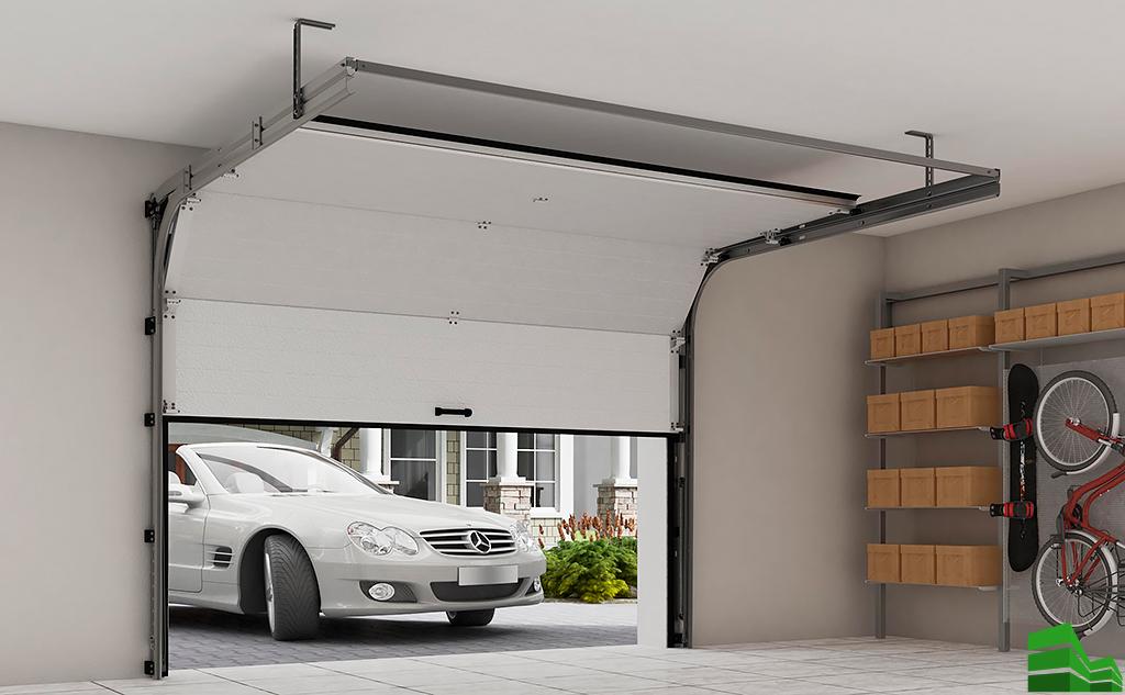 - для эксплуатации не требуется организация свободного места перед гаражом. Вся конструкция компактно умещается внутри помещения.
