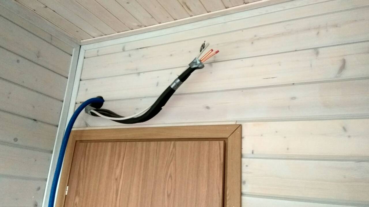 Окончания электропроводов предварительно зачищают от изоляции, обжимают клещами и устанавливают на них специальные наконечники. Подключение готового кабеля осуществляется согласно схеме, описанной в инструкции от производителя оборудования.