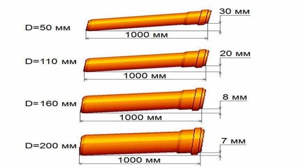 - выполняется укладка трубопроводов. Они должны иметь заданный уклон, который соответствует диаметру трубы. Так, для элементов на 110 мм на каждый метр уровень должен понижаться на 2 см. Чем больше диаметр, тем меньше оптимальный наклон;