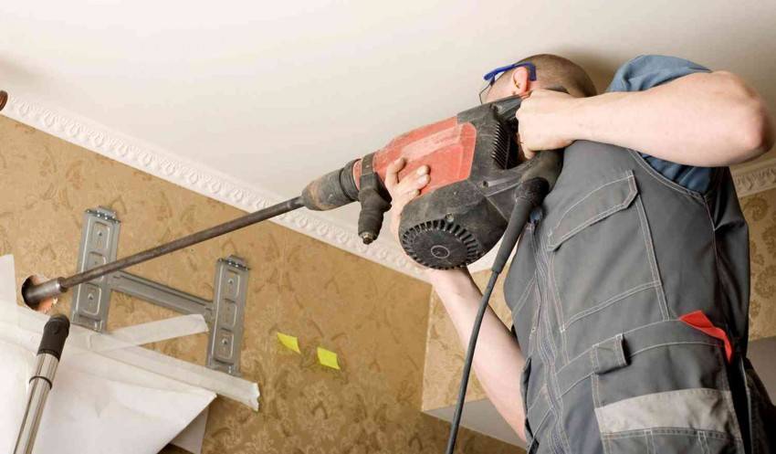 После того, как вы расставите всю соответствующую разметку для отверстий – её, соответственно, потребуется реализовать. Отмеченные места необходимо пробуравить перфоратором. При этом, минимальный диаметр пробуравленного отверстия должен составлять 5 сантиметров, т.к. это минимальное открытое отверстие, в которое способна свободно пройти магистраль.