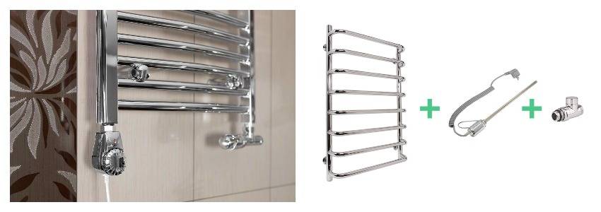 В полотенцесушителях этого типа тепло продуцируется как электрическим нагревателем, так и горячей водой из системы отопления или ГВС. При отключении или ремонте коммуникаций прибор переводится на электропитание, а в отопительный сезон — в режим обогрева жидким теплоносителем.