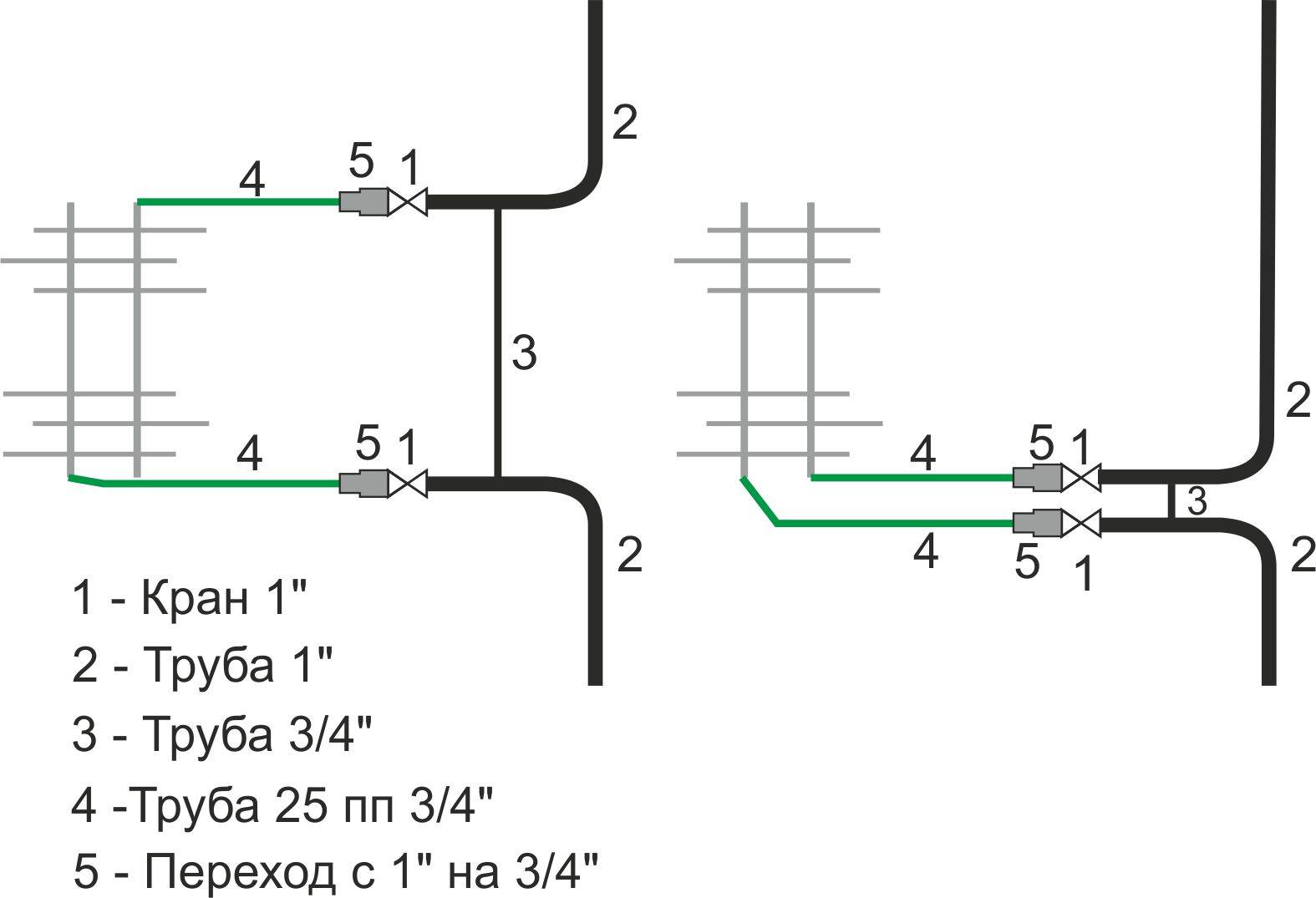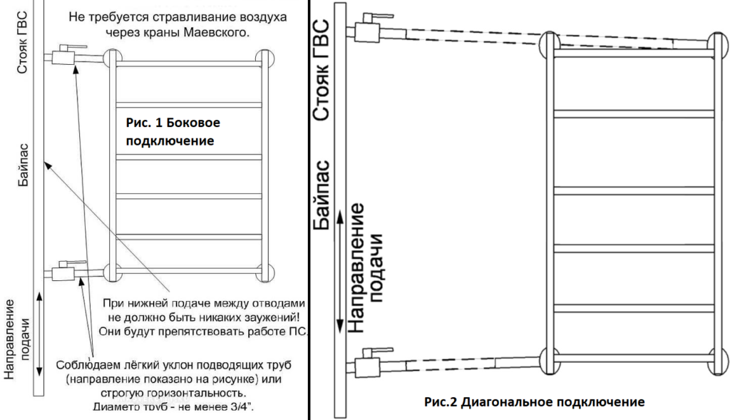 Схема установки полотенцесушителя может осуществляться по двум способам: