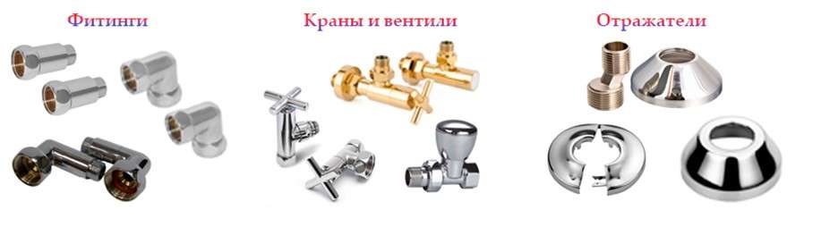 2. Схема подключения полотенцесушителя к ГВС требует приобретения дополнительных соединительных фитингов, для чего берется в расчет способ крепления на полотенцесушителе и водопроводной магистрали: