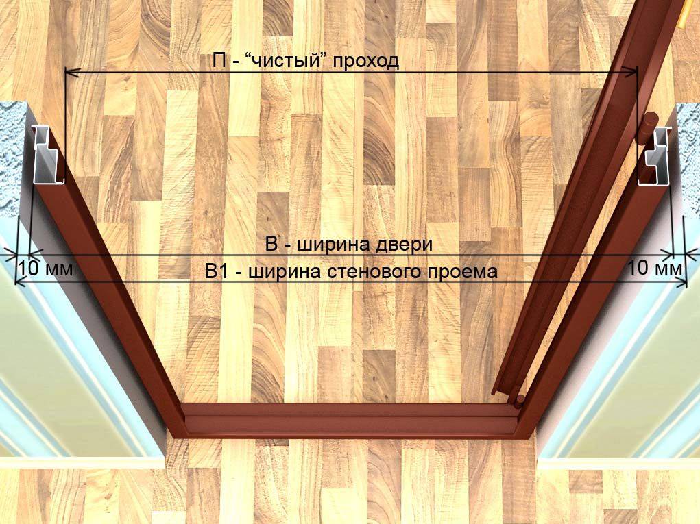 В случае, когда вы устанавливаете одностворчатую конструкцию, расчеты еще проще: прибавьте и к ширине, и к высоте по 5 см. Этого достаточно, чтобы конструкция полностью закрывала собой проход. Чтобы найти необходимую длину направляющей, достаточно умножить найденную ширину полотна на 2.