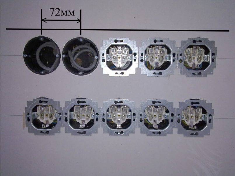 Многие сталкиваются с некоторыми проблемами при установке подрозетников. В обычном случае места будущего монтажа первым делом резмечаются. Стандартное расстояние между розетками составляет 71 мм. Начнем с простого случая, когда узел включает в себя лишь один элемент. Процесс выполнения технологических операций выглядит следующим образом: