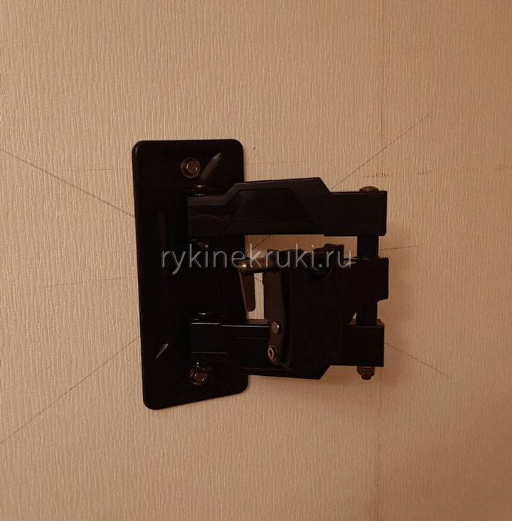 ВАЖНО! Телевизор располагается не точно по центру наклонно-поворотного механизма, он смещен вниз от него. Кроме того, распрямите кронштейн, повращайте его, представив, что на нем уже закреплен телевизор
