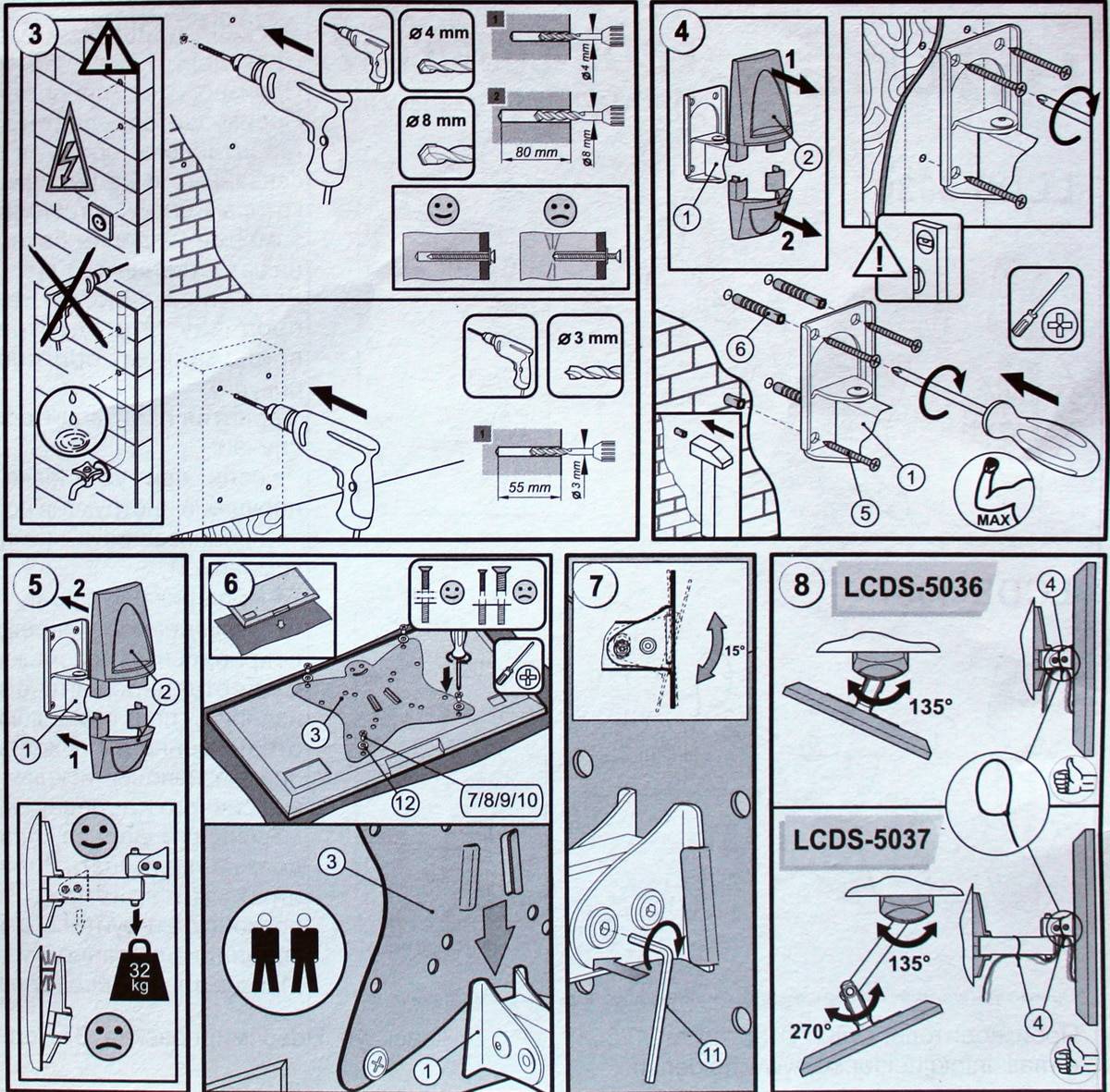 Повторное использование крепежа, имеющего в составе пластиковые элементы, не рекомендуют. Такие дюбеля уже не гарантируют надежного удержания веса, поэтому нередко требуется помощь анкеров. Все представленные варианты крепежей подходят для телевизоров, которые не имеют чрезмерно большой массы.