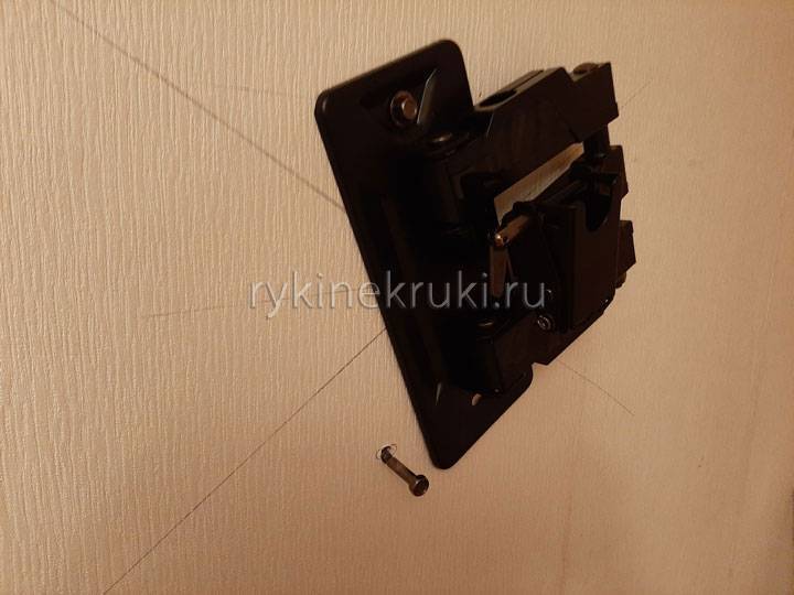 Обратите внимание на выпирающую втулку, которая приварена к кронштейну – она обязательна должна быть наверху телевизора, и именно она будет навешиваться на ту часть кронштейна, которая крепится к стене.