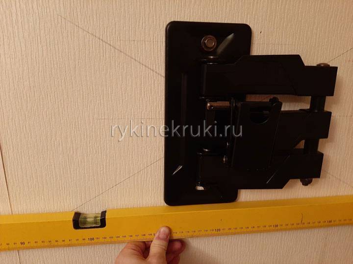 Вы сразу увидите, где примерно на стене у Вас должен размещаться кронштейн – это точно НЕ на пересечении диагоналей экрана! Важно, чтобы когда Вы сложите Ваш кронштейн и приблизите его максимально к стене, то именно в этом положении телевизор должен оказаться на том месте, где Вы первоначально делали под него разметку при помощи шаблона из бумаги